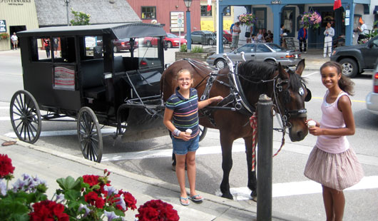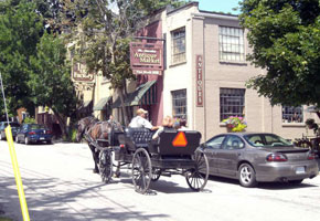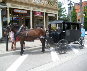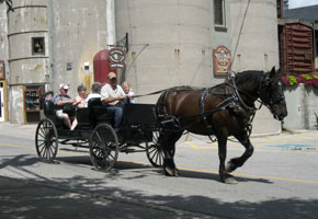 While visiting St Jacobs, take a break out of your day and join us for a buggy ride through some area farms and down quiet country roads. Listening to the sound of the horse's hooves is sure to relax you. Your friendly and knowledgeable Mennonite guide is more then happy to answer any questions you might have, as well as give you some history and culture of the area. We are able to stop by a Mennonite farm and visit the Quilt Shop, buggy shed, and sugar bush. The vehicle you will travel in is a traditional Mennonite carriage much like the ones being used today by The Old Order Mennonites.