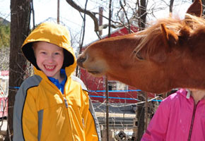 A visit to the sugar bush would not be complete without tasting some of the maple syrup produced on location. We do this by giving the students a maple toffee on snow demonstration and allowing them to sample it at the end. Maple toffee on snow is pure maple syrup boiled, poured onto snow, and eaten off of a popsicle stick. We also offer hot and cold apple cider and bottled water along with the tour. If the teachers and staff would like to bring an additional snack, they are more than welcome to do so. In the sugar bush we have a petting zoo complete with a variety of farm animals. The children are free to pet them and feed a few of them for the remainder of their time at this station.