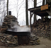This tour starts at the tree introducing sap and the methods of collection. We then tour the Native American Sugar Camp, The Settler's Sugar Camp, The Century Sugar Camp, and the modern day operation that is used today. At each location the guide points out and explains the collection and production process used during each time period. Along the way, we are inviting any questions that might arise. Since there is a lot of information, the guides try to adapt their commentary for every age group.